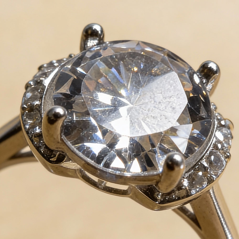 Classic Round Halo CZ Silver Ring