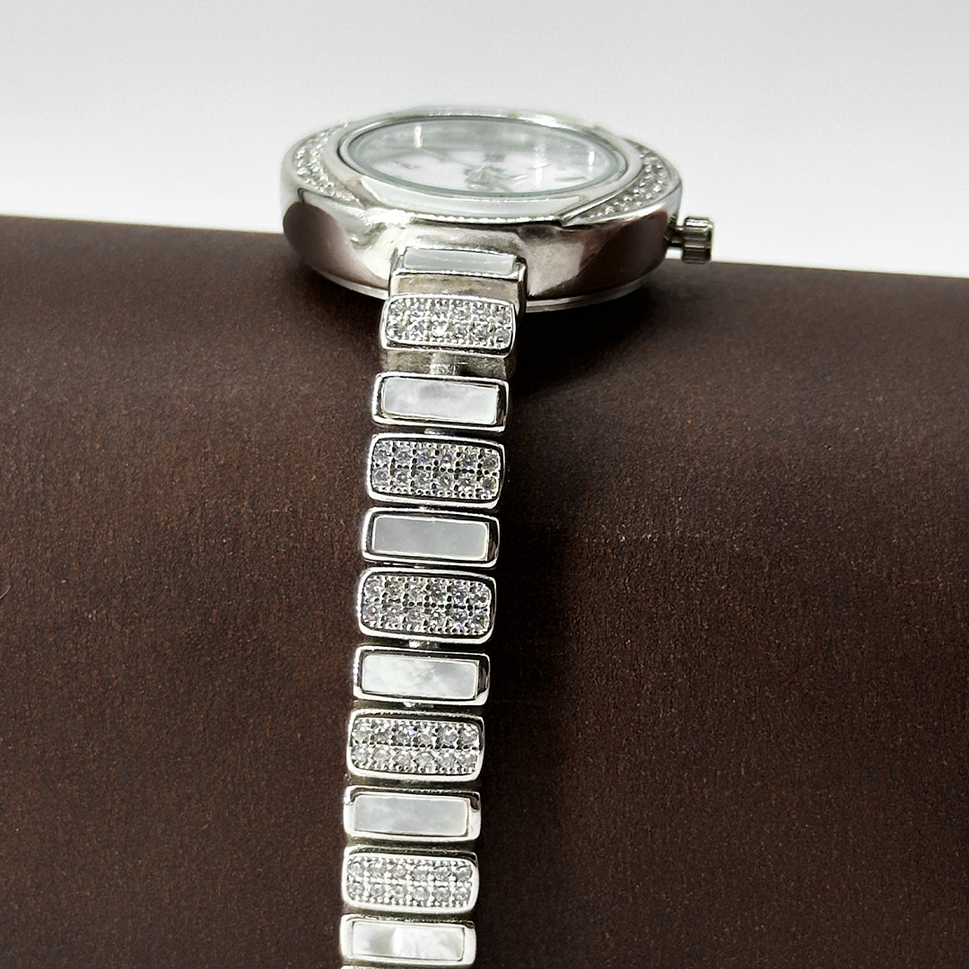 Adorned with shimmering Cubic Zirconia (CZ) stones, this watch adds a touch of glamour while maintaining a refined aesthetic. The adjustable strap provides a comfortable fit, and the high-quality quartz movement ensures precise timekeeping. Whether you’re heading to a business meeting, a special event, or just accessorizing your daily look, this silver watch is the ultimate statement of elegance.