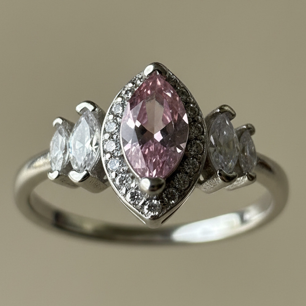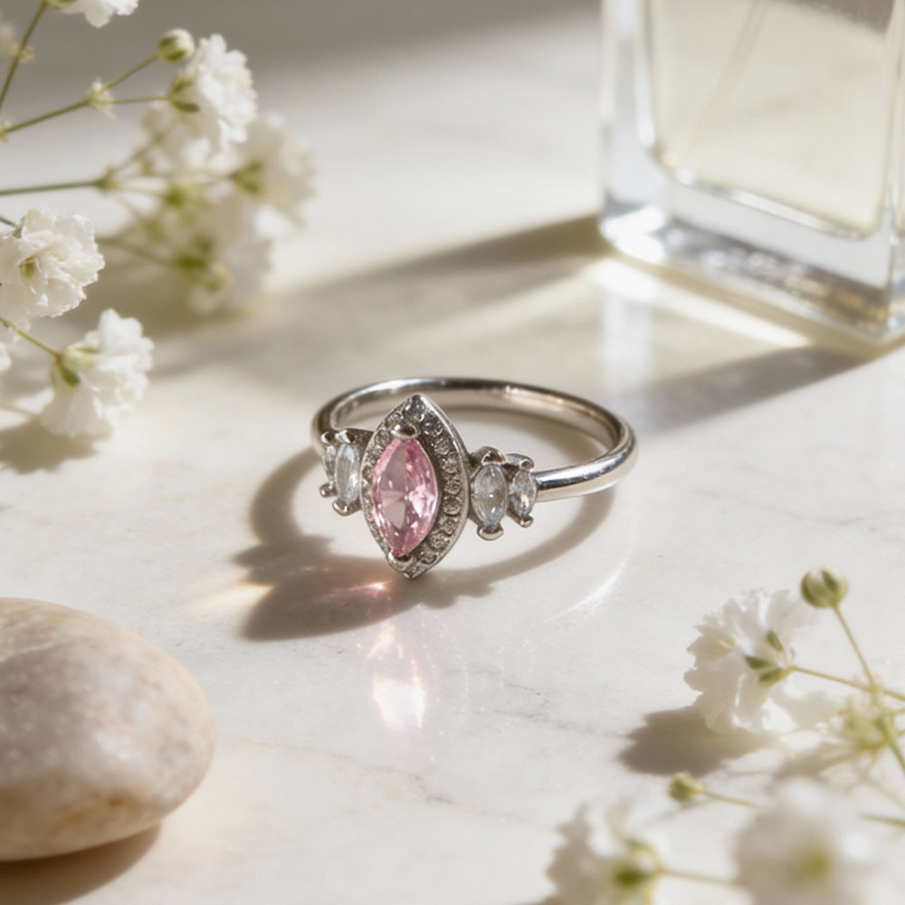 Blush Marquise Empress Silver Ring Graceful Radiance