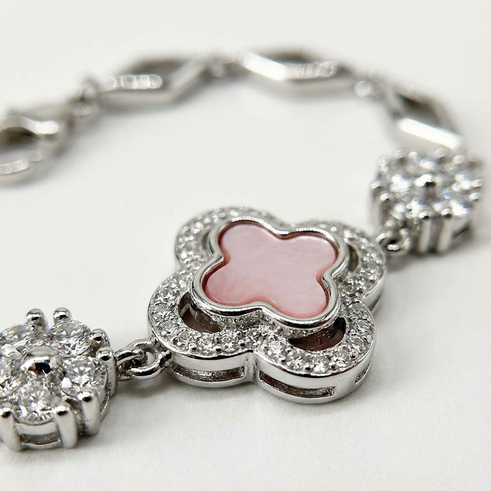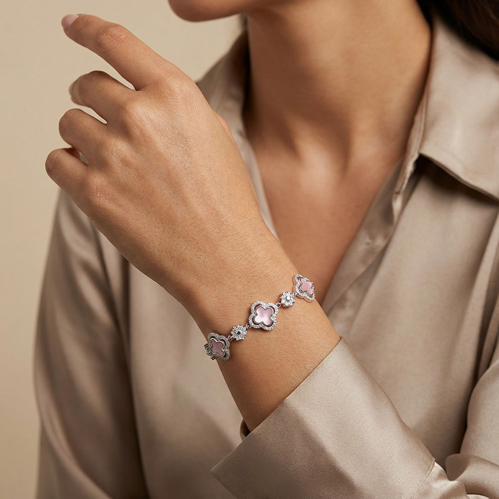 Celebrate elegance and femininity with the Petals Pink Bracelet. This delicate bracelet features a beautiful pink stone surrounded by intricate floral detailing, all set in high-quality 925 sterling silver. The soft pink hue symbolizes grace, love, and beauty, making it a perfect piece to complement any outfit for a romantic or chic look.
