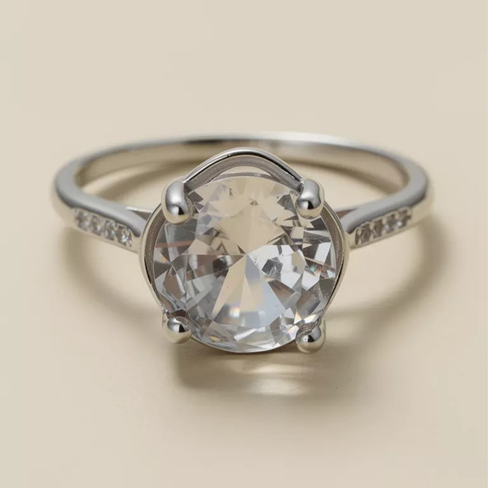 The Design Narrative Unlike traditional solitaires, this piece features a uniquely sculpted setting. The fluid silver frame curves around the center stone, creating a modern silhouette that feels both bold and feminine. The band is enhanced with subtle CZ accents embedded within the shoulders, adding a layer of sophisticated texture and depth.
